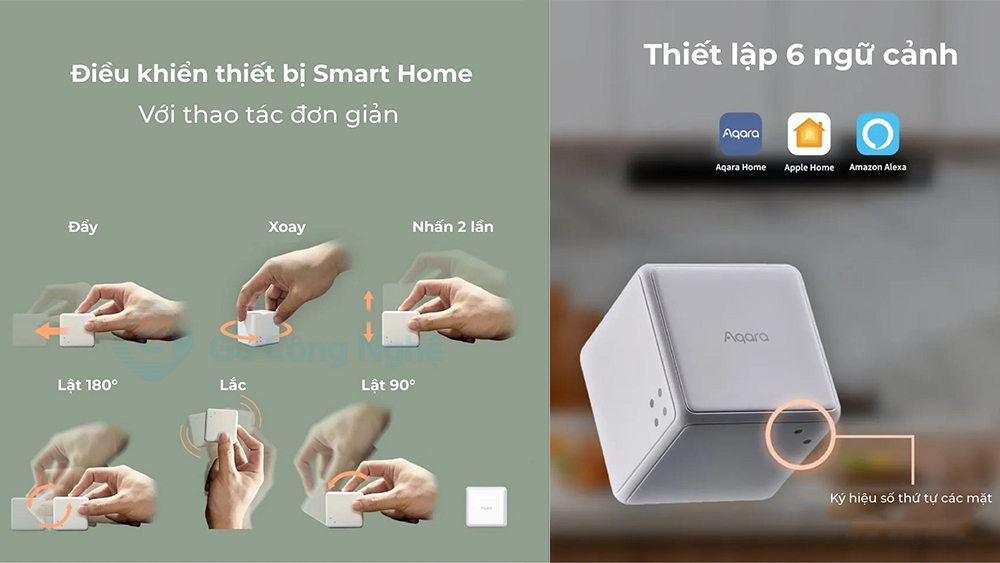 Khi muốn kích hoạt các ngữ cảnh với chế độ Scene, bạn chỉ cần xoay các mặt khác nhau. Chẳng hạn như mặt 1 sẽ khởi động ngữ cảnh Morning, mặt 2 là ngữ cảnh Romantic, mặt 3 là ngữ cảnh Cleaning… Thậm chí nếu lắc Aqara Cube T1 Pro bạn cũng có thể kích hoạt ngữ cảnh Good Evening. Mọi thiết lập đều dễ dàng tùy chỉnh trong ứng dụng.